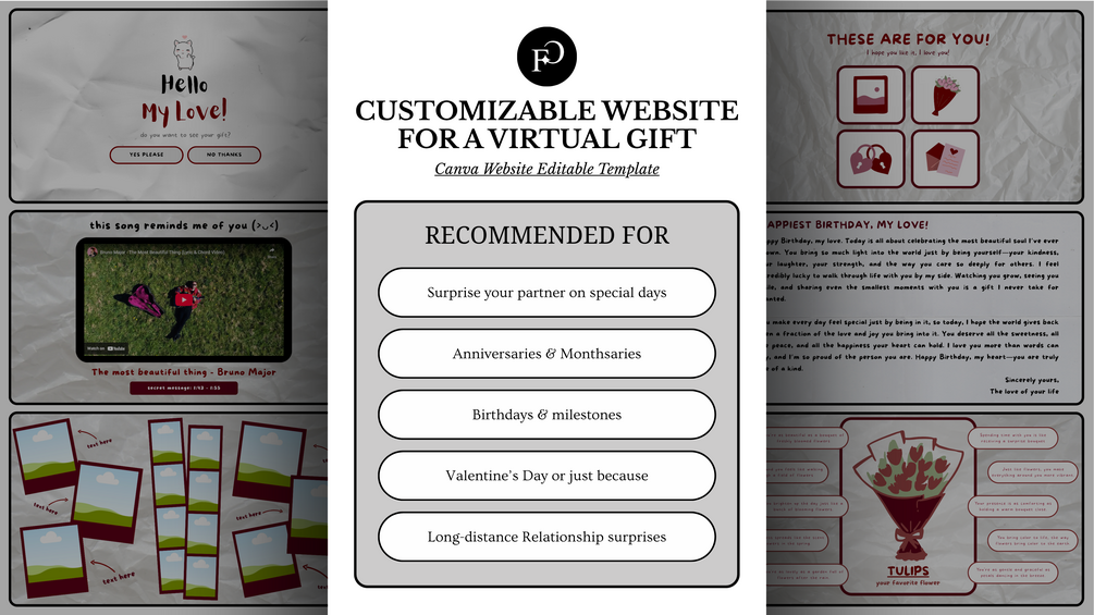 Create a heartfelt and charming gift in minutes! This fully editable Canva website template—perfect for sharing love, memories, and personal touches on any occasion. ⋆˚࿔