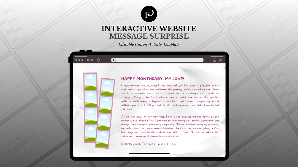 Create a heartfelt and charming gift in minutes! This fully editable Canva website template—perfect for sharing love, memories, and personal touches on any occasion. ⋆˚࿔